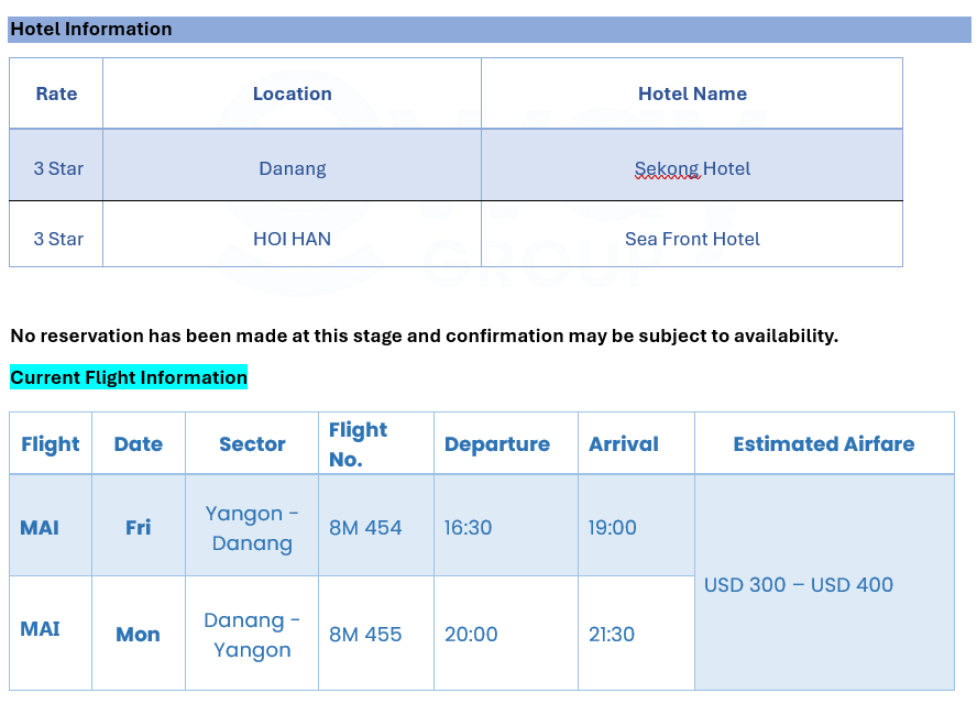 အထက်ဖော်ပြပါ ဈေးနှုန်းများသည် ဗီယက်နမ်နိုင်ငံ၏ အောက်ဖော်ပြပါ Super peak period များအတွက်လည်း အကျူံးမဝင်ပါ။