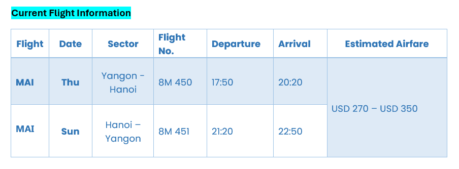 ခရီးစဉ်ထွက်ခွာမည့်ရက် – ၂၀၂၆ ခုနှစ် ဇန်နဝါရီလမှ ဒီဇင်ဘာလအထိ